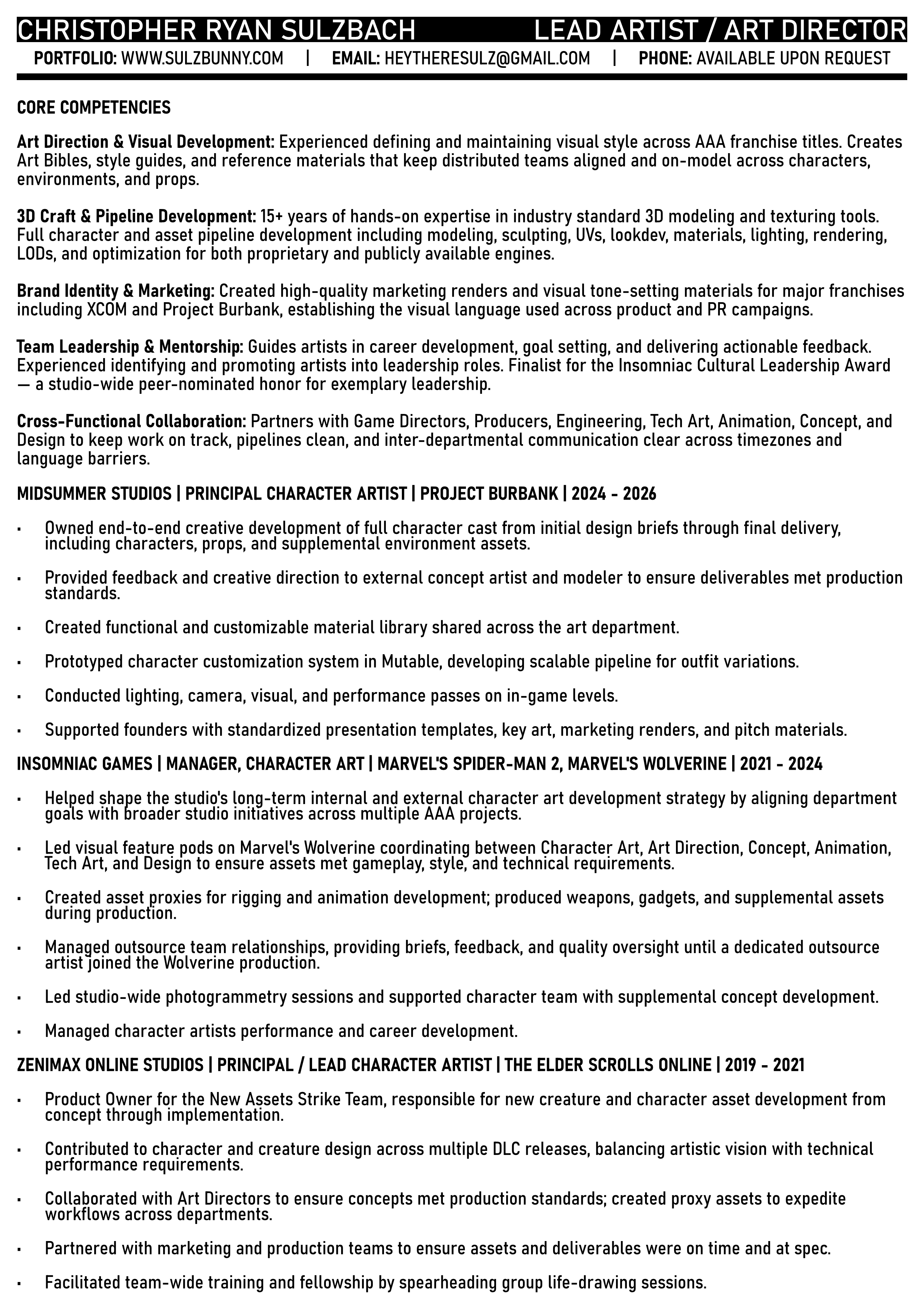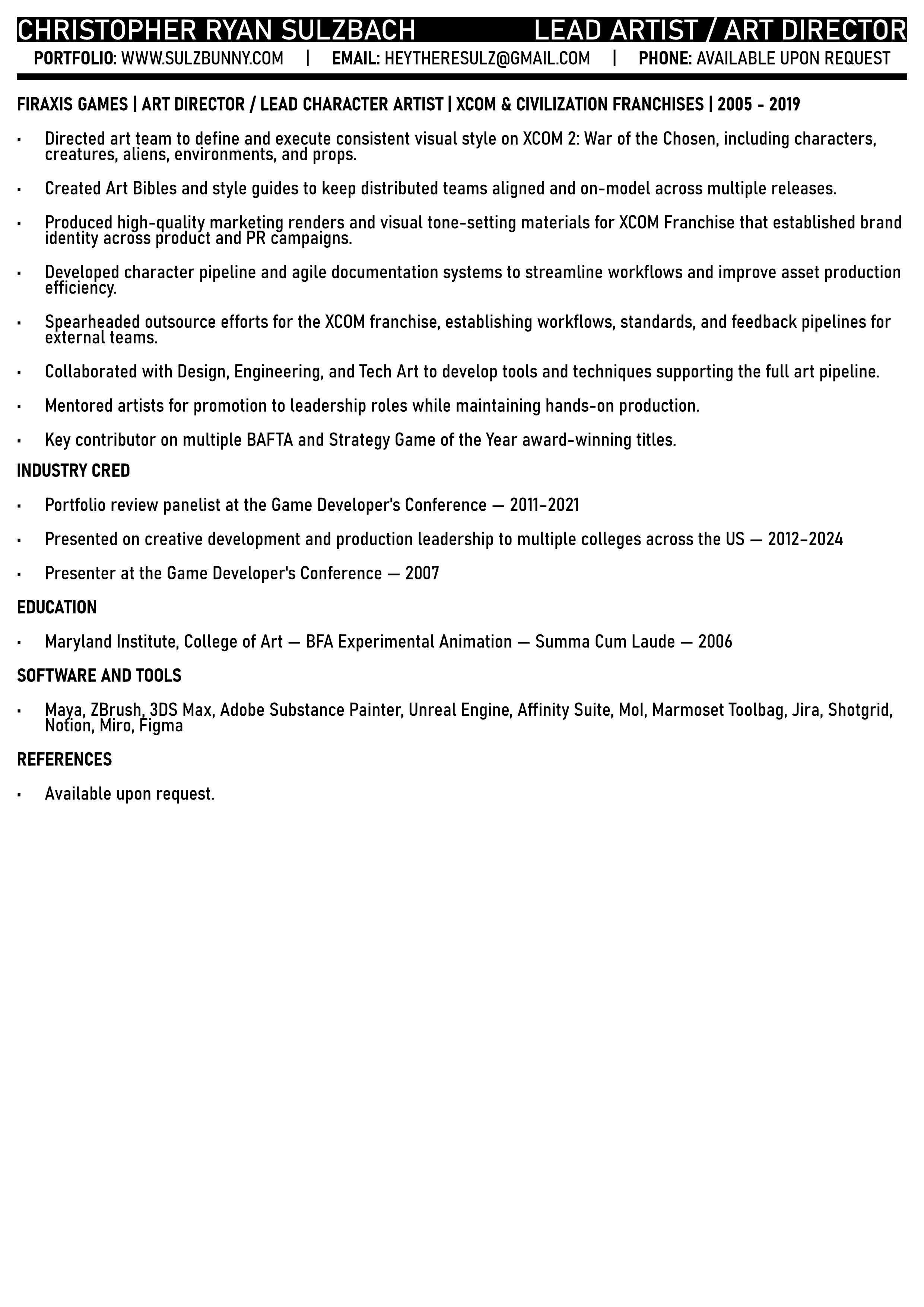 Chris Sulzbach - LEAD ARTIST / ART DIRECTOR