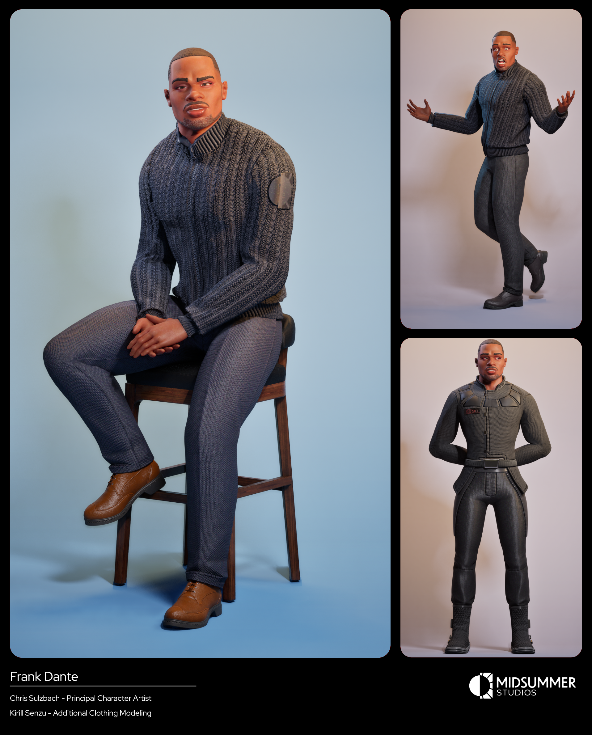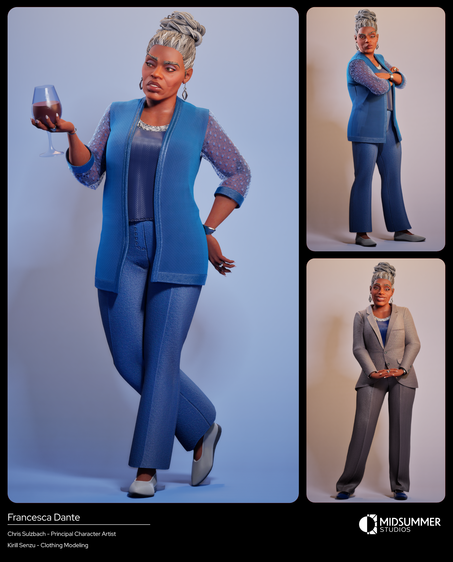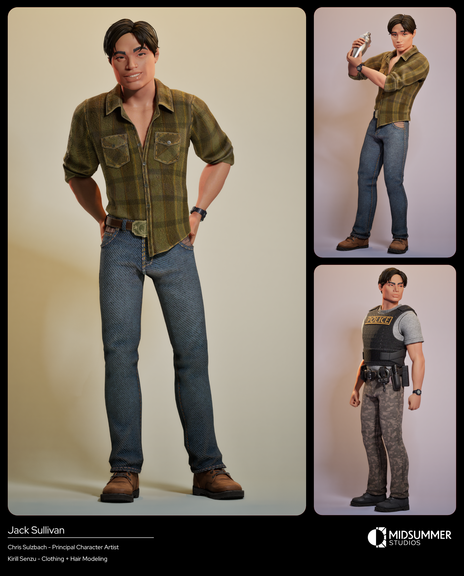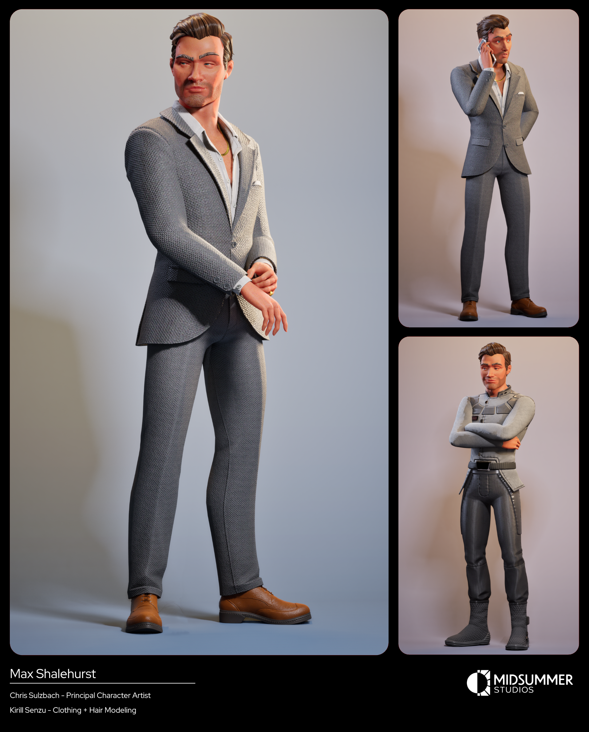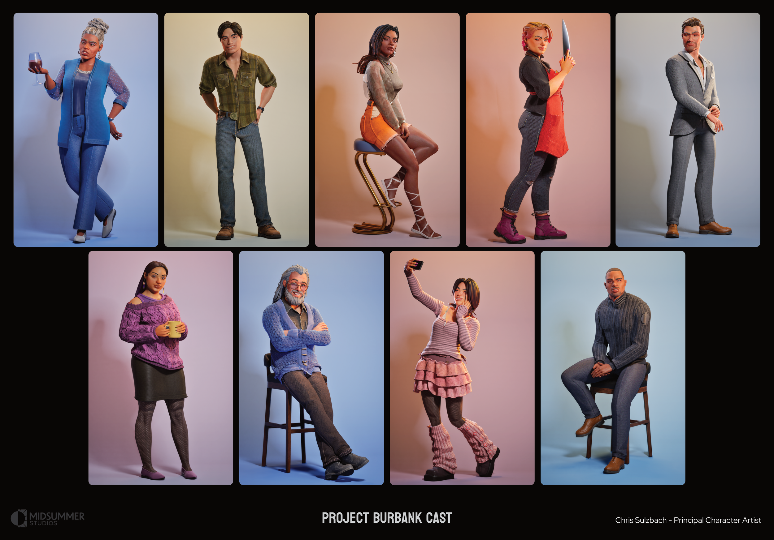 This is a selection of characters made for Project Burbank during my time at Midsummer Studios. I was responsible for character design, all modeling, kit-bashing, material creation, texture work, and dynamics unless otherwise noted. I also had the pleasure of working with a fantastic modeler named Kirill Senzu through our pals at Dardo Studios. Kirill handled the costumes and hairstyles for a few of the characters.