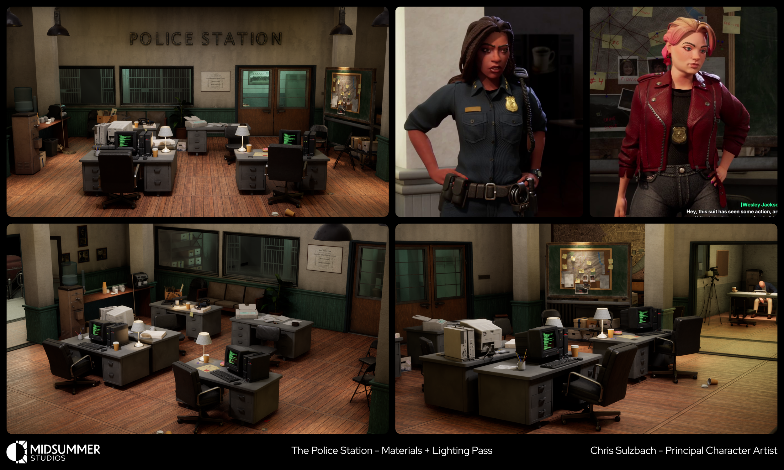 For the Police Station, I conducted a full lighting pass as well as a materials polish pass. I also did the procedural cinematic lighting setups.